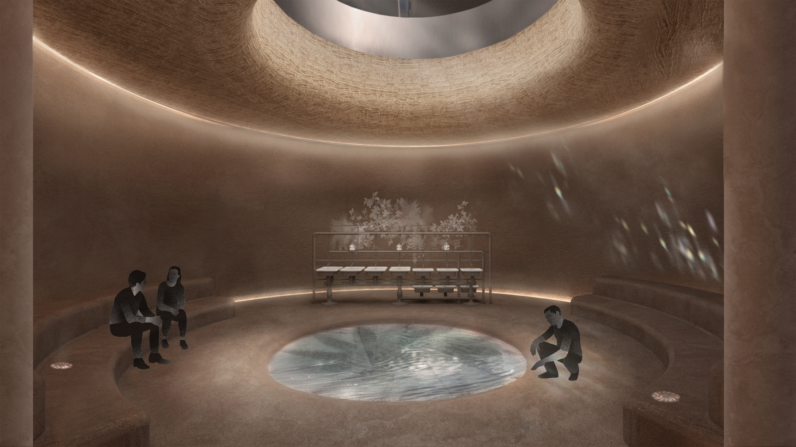 At its centre lies the Well of All Beings — a calm, meditative core shaped by water, clay and soft light. Designed as a refuge for both visitors and future natural inhabitants, it offers a moment of pause, grounding and connection.