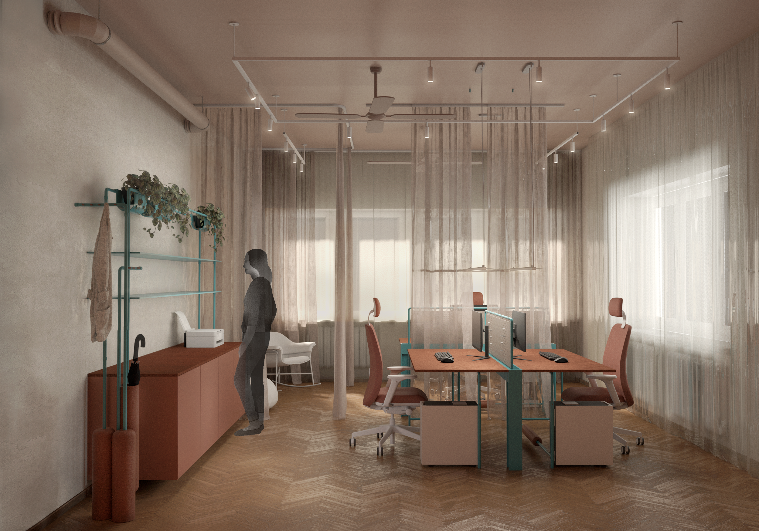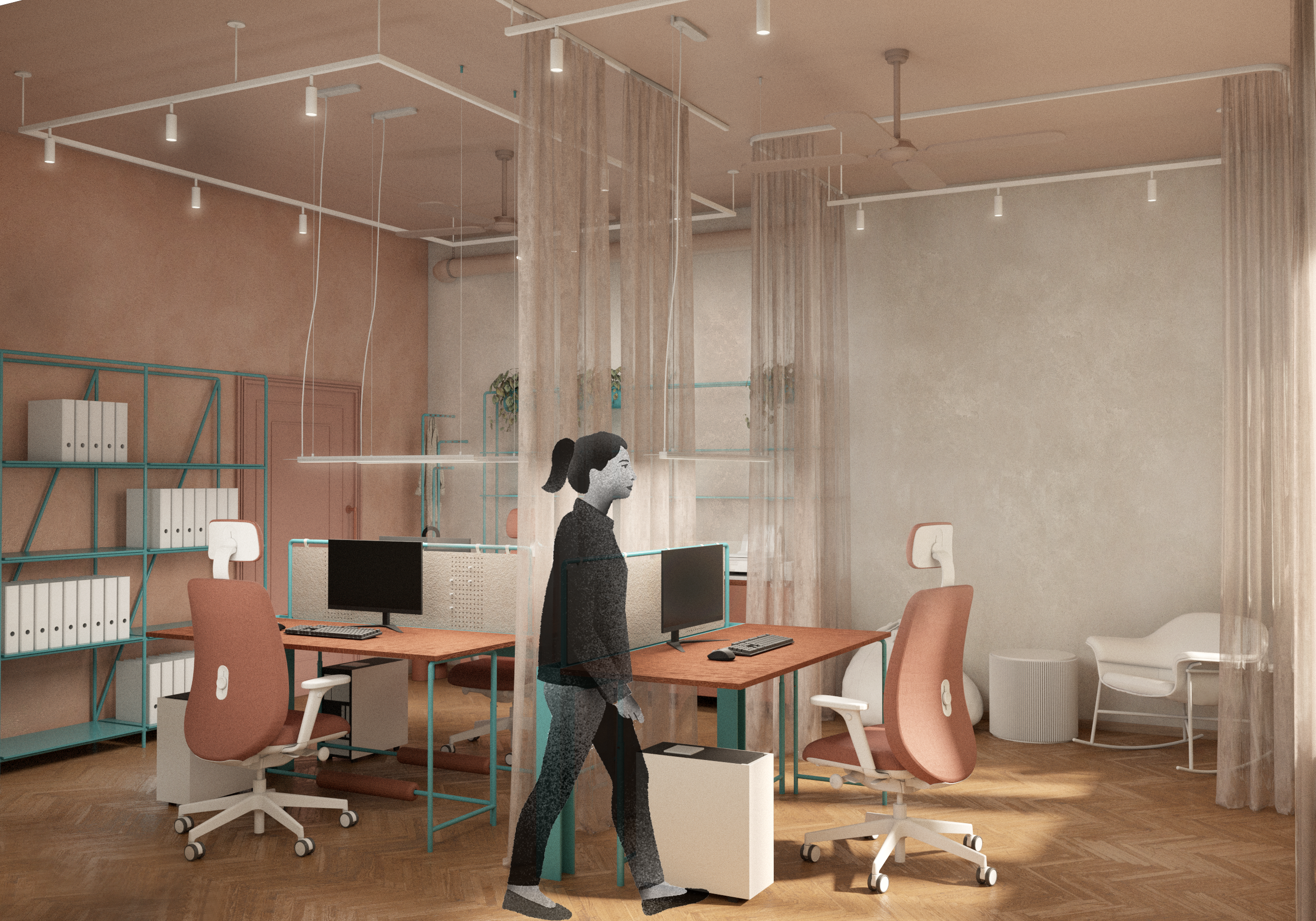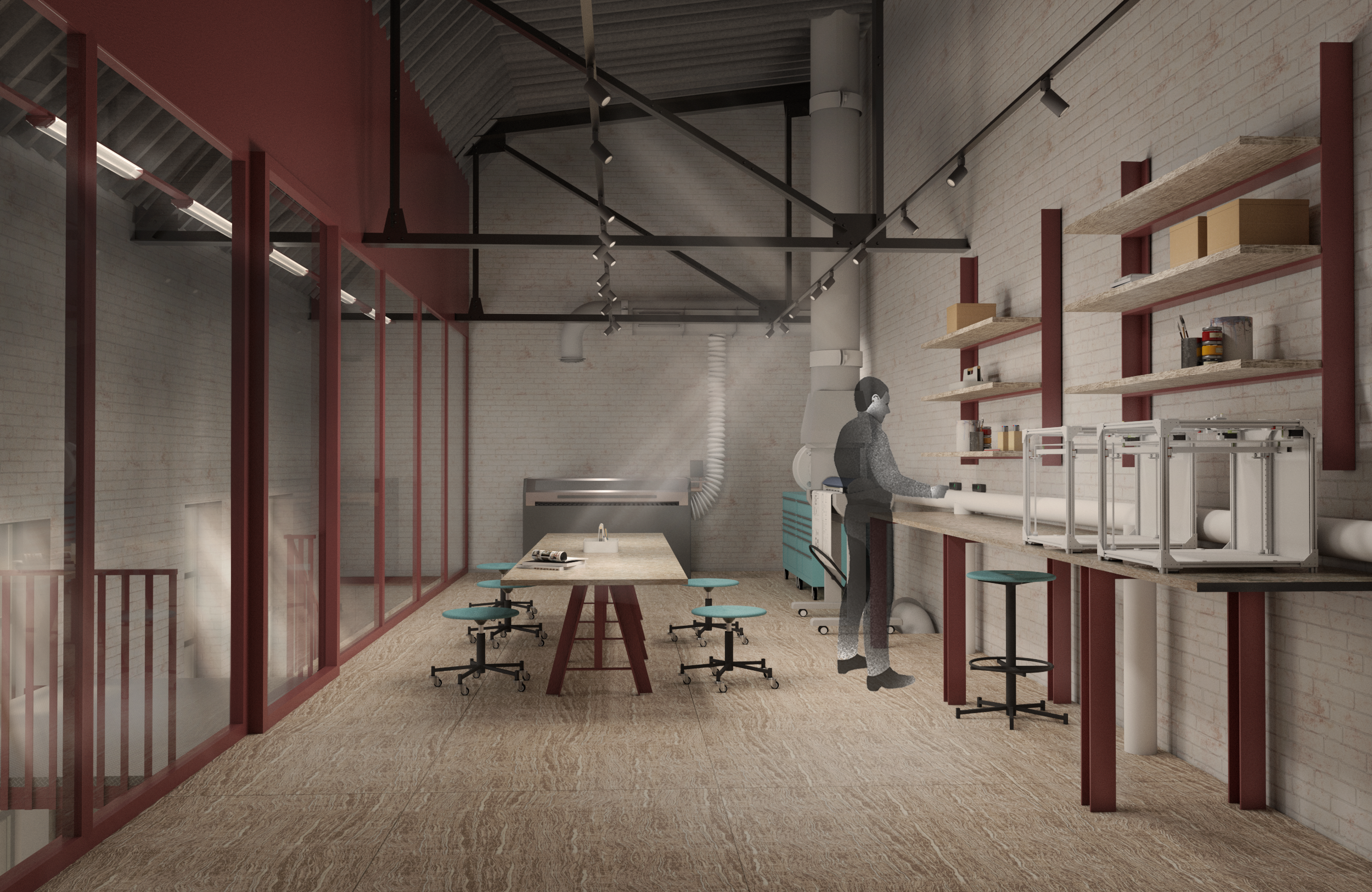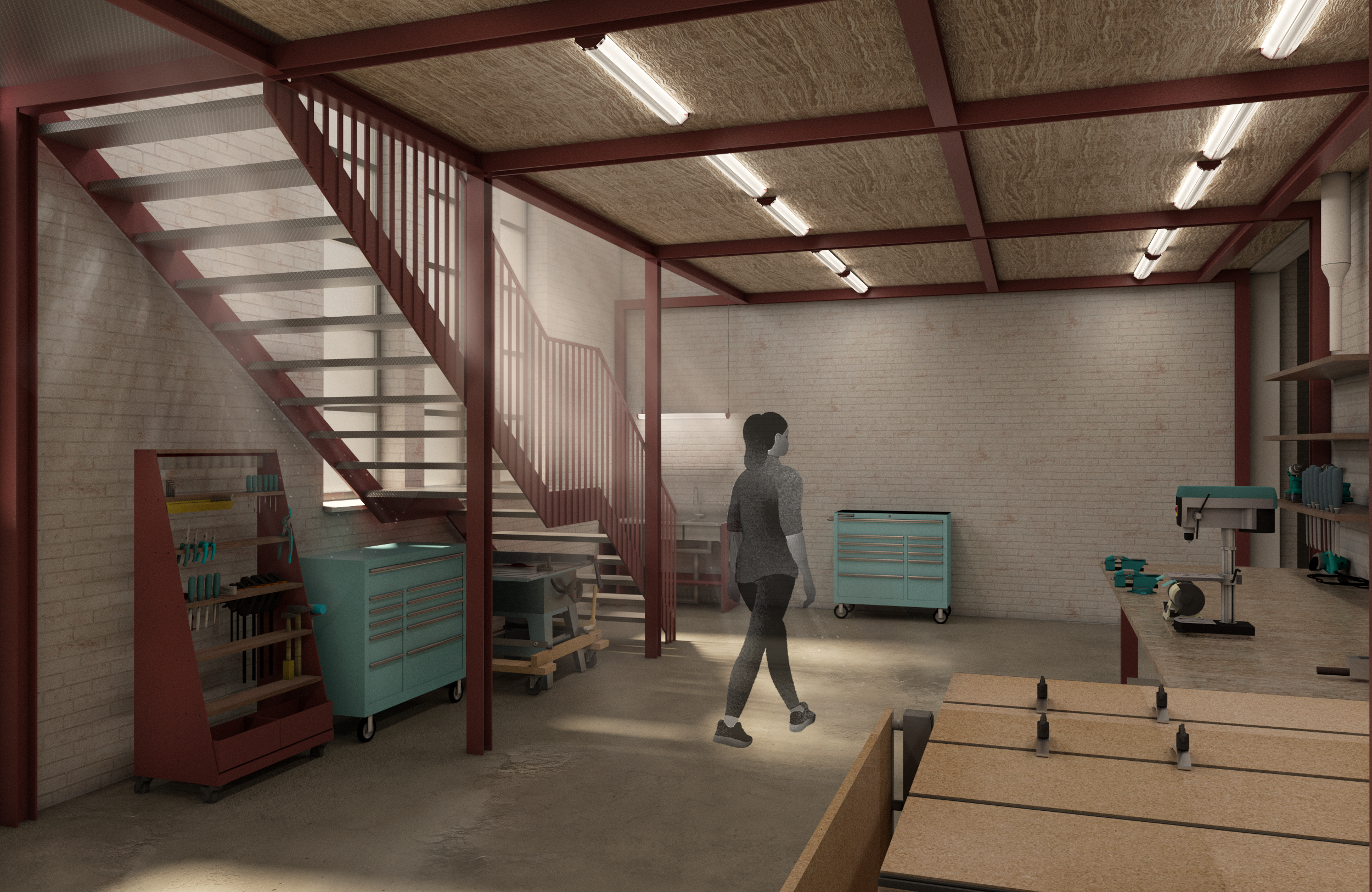 The office and workshop areas prioritise comfort, accessibility and creative freedom. Natural textures, acoustic softness and adaptable workstations support different sensory needs and working styles, while an open creative zone remains available for artists and future projects. The workshop combines durability, functionality and comfort, enabling precise work, creative experimentation and teamwork. It is a space that supports the full arc of creation — from first idea, through prototype, to finished work.
