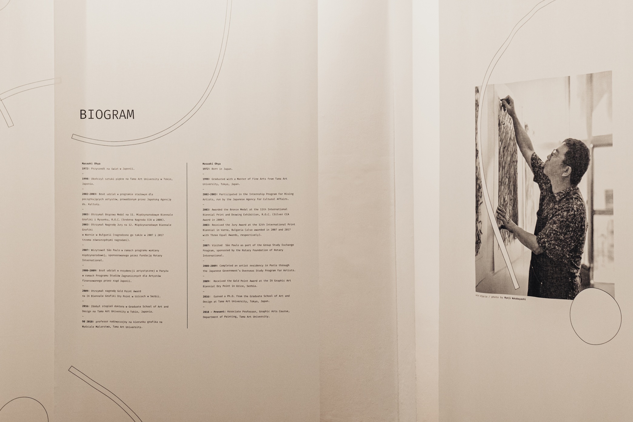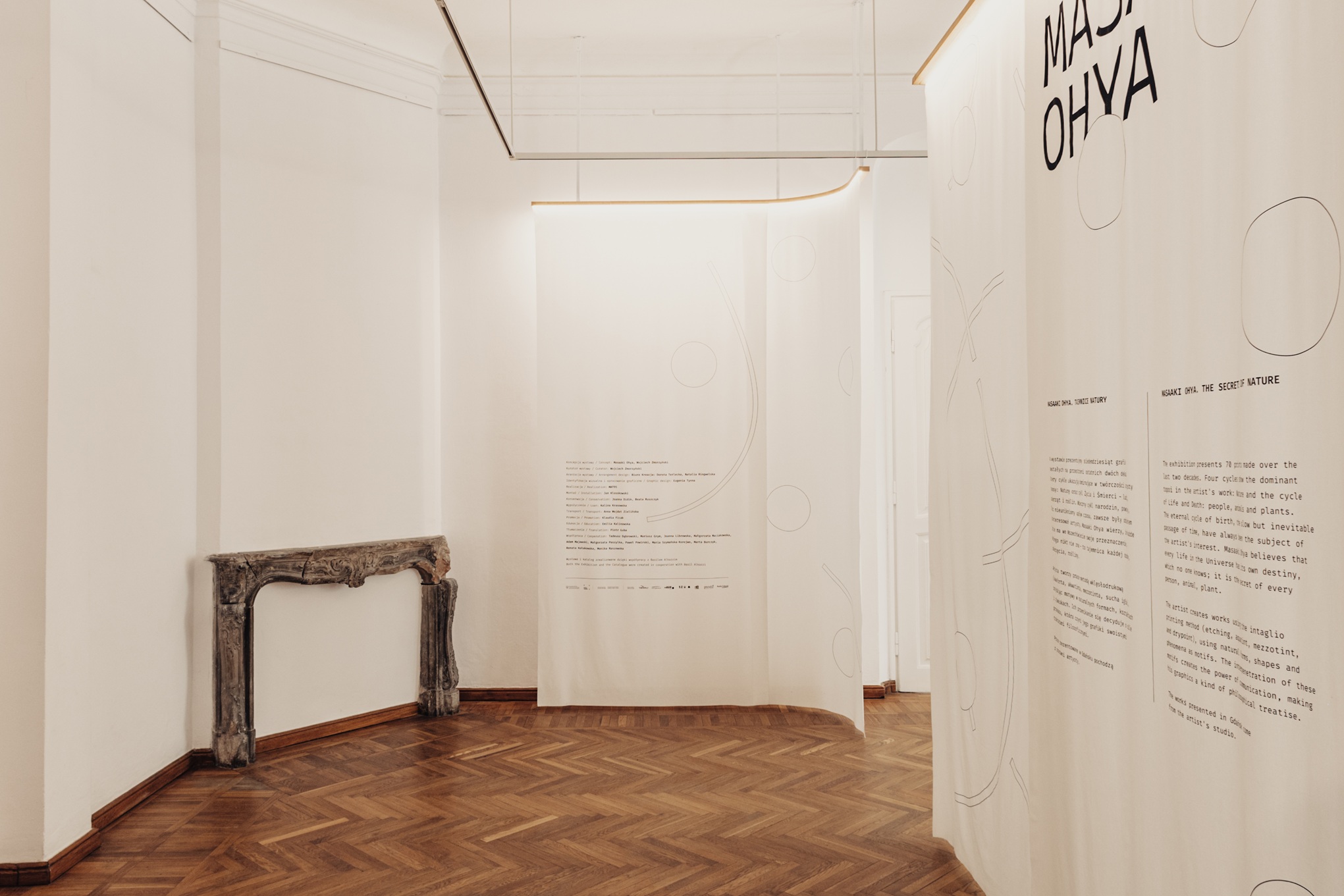 The exhibition features seventy prints created over the last two decades, divided into four thematic cycles: Nature and the Life and Death of Humans, Animals, and Plants cycle. Dorota Terlecka from Biuro Kreacja, in collaboration with Eugenia Tynna, the graphic designer, is responsible for the exhibition space design. The goal was to create a space that would harmoniously resonate with the philosophical nature of Ohya’s works. The exhibition is a journey into the world of symbols, forms, and shapes that the artist discovers in the reality around him.