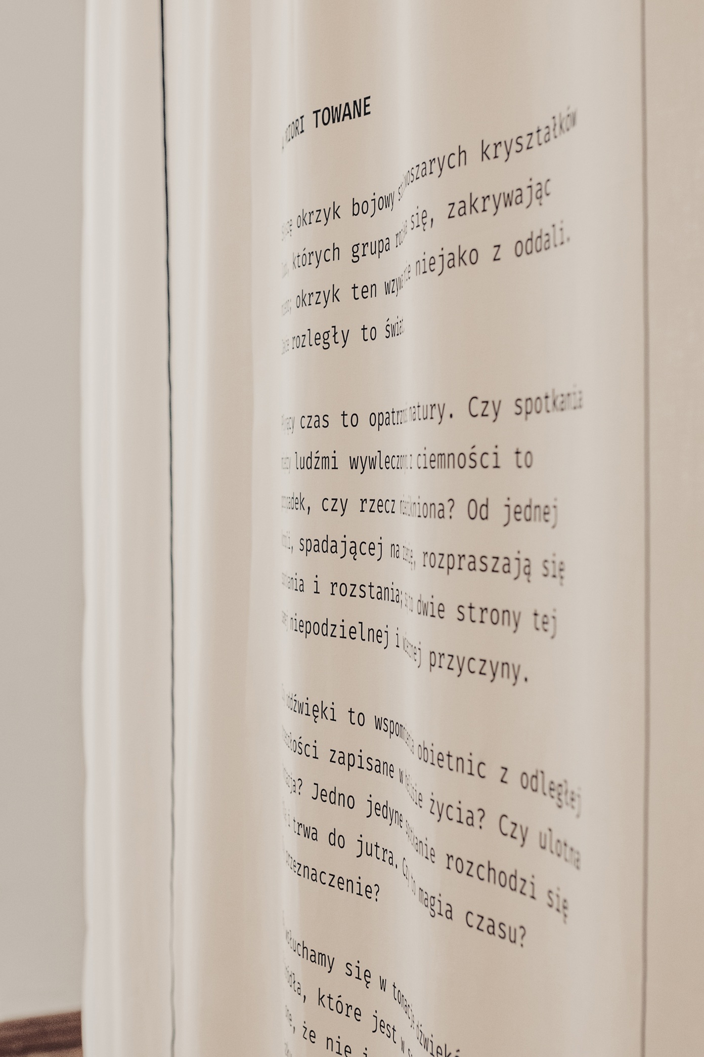 Each element of the exhibition was subordinated to the main goal – creating a space of concentration and contemplation. The choice of materials was also not accidental – the project was created in the spirit of ethical design. Local wood, natural cotton fabrics, paper, and assembly systems enabling the reuse of components were used.