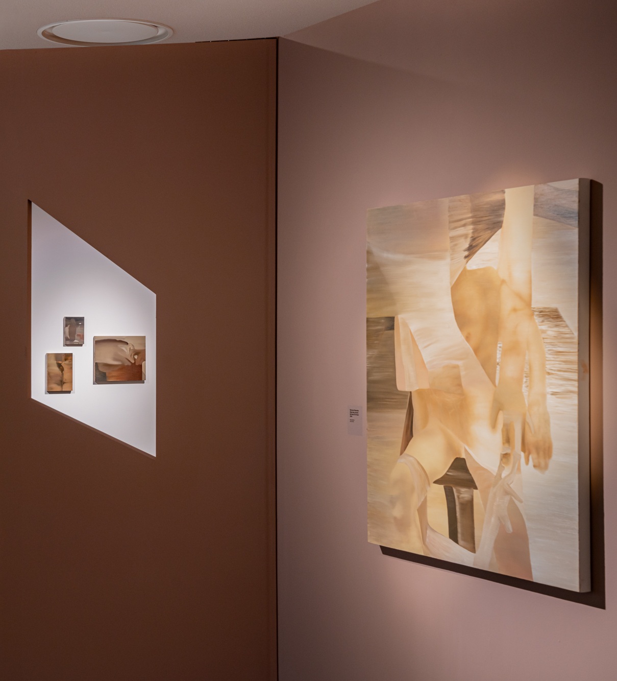 We had the pleasure of co-creating the exhibition’s arrangement, designing an intimate space that emphasizes the personal nature of the works while encouraging visitors to pause and be present in the “here and now.” Our aim was not only to present the art, but to create an experience – an invitation to enter into a subtle, personal dialogue with the story told by the artist.