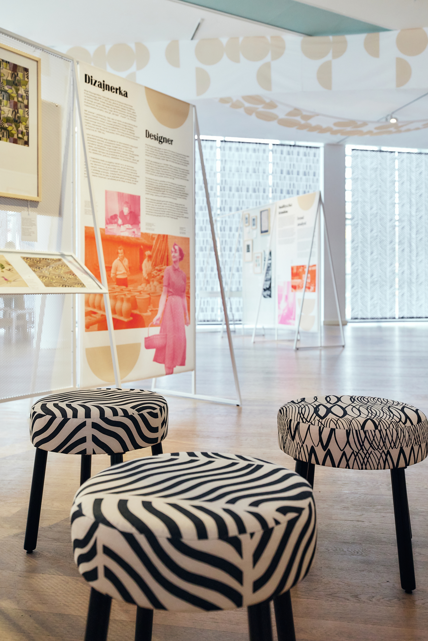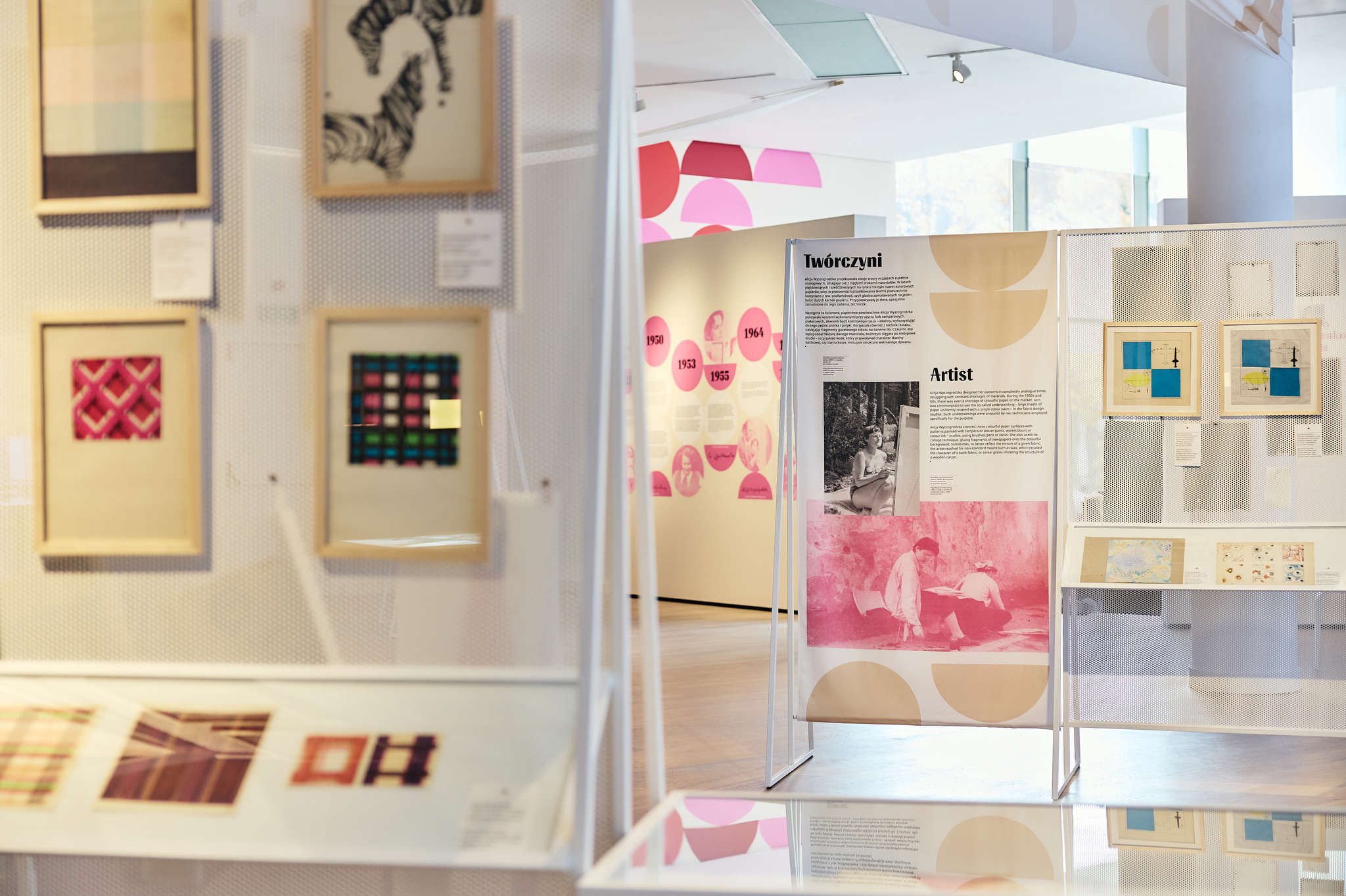 The exhibition “Alicja Wyszogrodzka. Polish Projects Polish Designers” was an exceptional design challenge. Its aim was to capture the richness and diversity of the artist’s creative universe – a world full of color, form, patterns, and materials that together create a cohesive yet multidimensional portrait of her work. The exhibition space was carefully arranged to balance visual intensity with clarity of presentation. Every element has its place, allowing visitors to follow the artist’s creative process – from early inspirations and sketches to finished textiles and industrial designs.