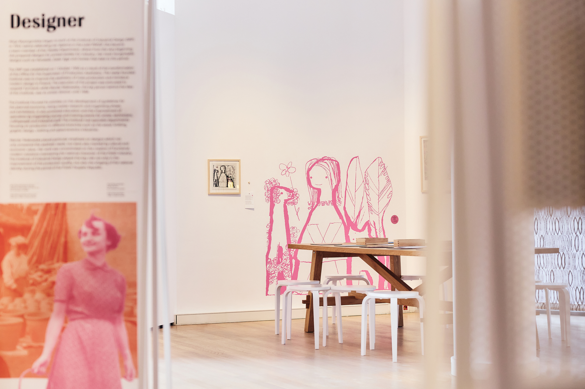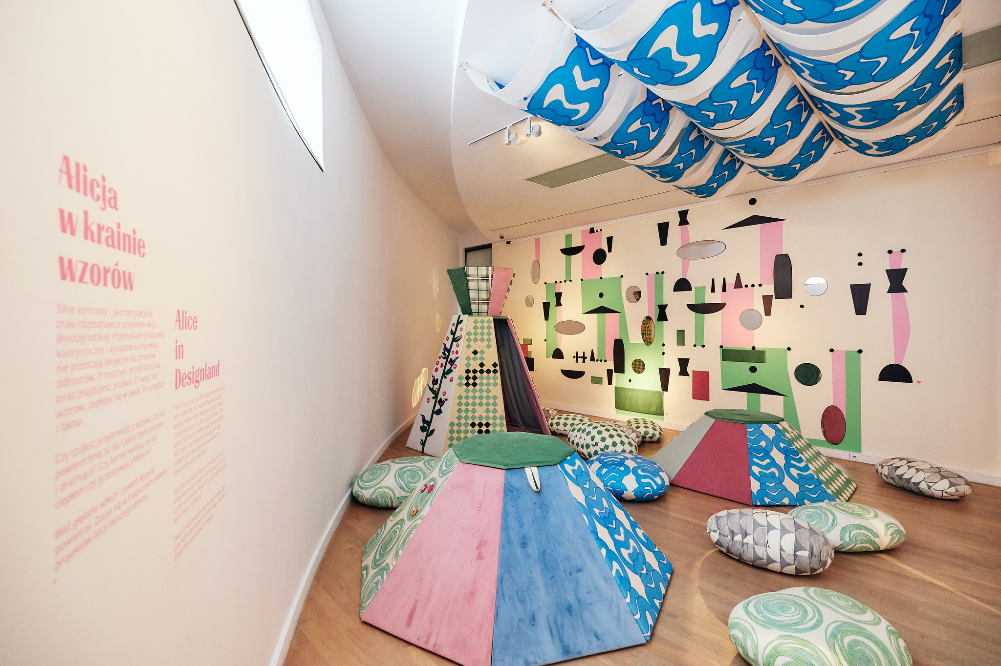 The spatial design reflects the essence of Alicja Wyszogrodzka’s artistic practice, highlighting her creativity, humor, and unflagging optimism. The exhibition encourages active engagement – visitors are invited to touch, experiment, and design on their own, while a dedicated sensory zone inspires the youngest audience members to play and creatively explore the world of textures and patterns.